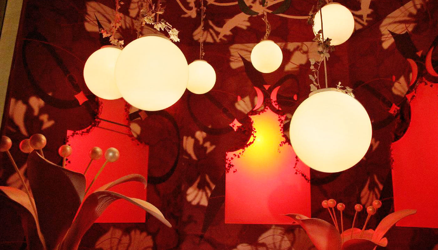 Für den 15. Gründungstag von MBC / Dubai. Tausenden von Kerzen tauchten zwei plastische Ziffern in feierliches Licht. Im Inneren einer raumgroßen orientalischen Laterne erstrahlen fantastisch leuchtende Lilienblüten.